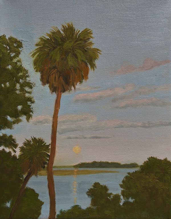 Moon Rise at Canoe Club, 11"x 14", Oil, $700